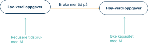 Når du så gjør begge deler samtidig, får du en eksponensiell effekt. Dere kan reallokere tid fra lav-verdi til høy-verdi arbeid, samtidig som høy-verdi arbeidet nå utføres mer effektivt.